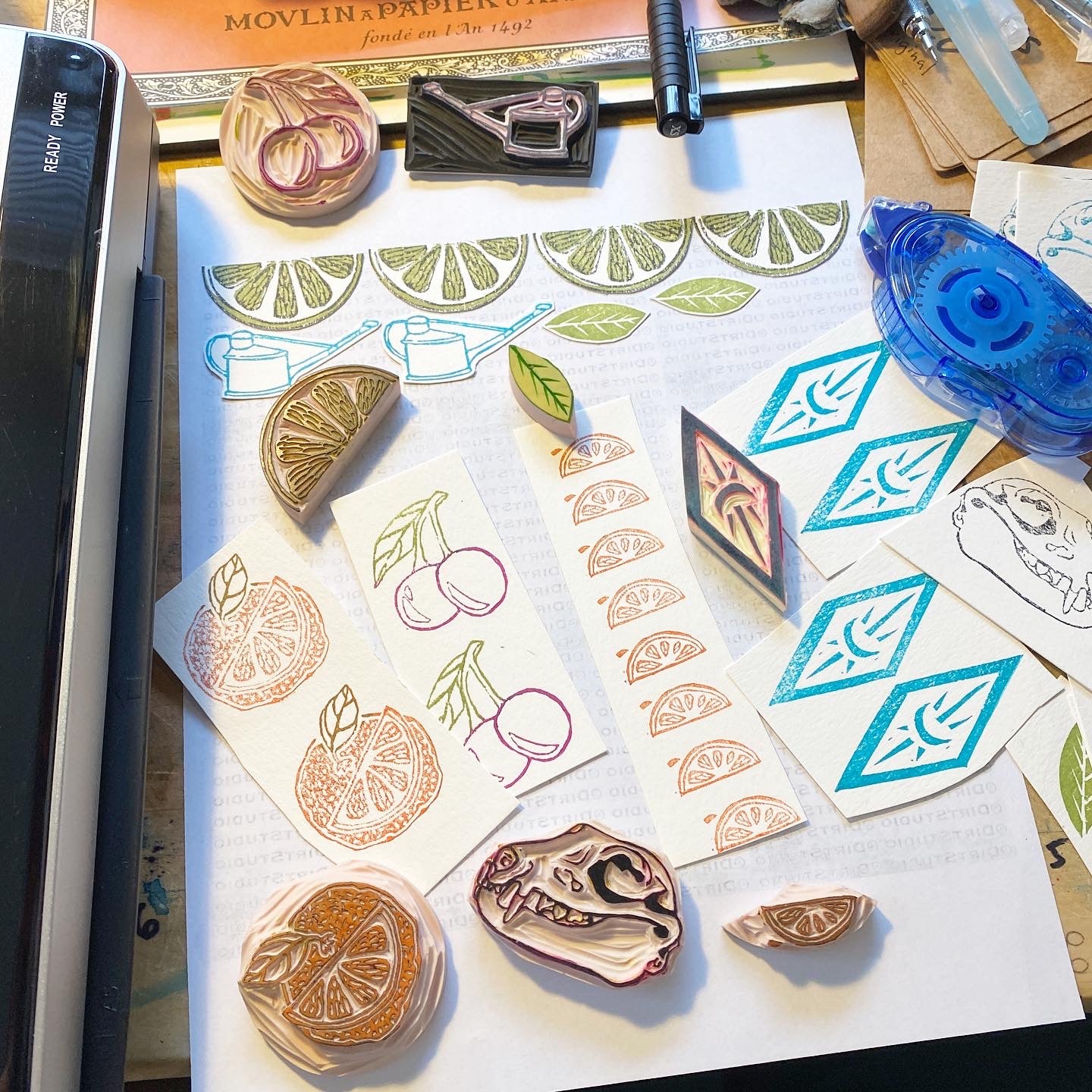 These earrings were made by me! I hand-carved the rubber, then hand-stamped the earrings, before laminating and adding the jewelry findings! You can only get these from Dirt Studio LLC!