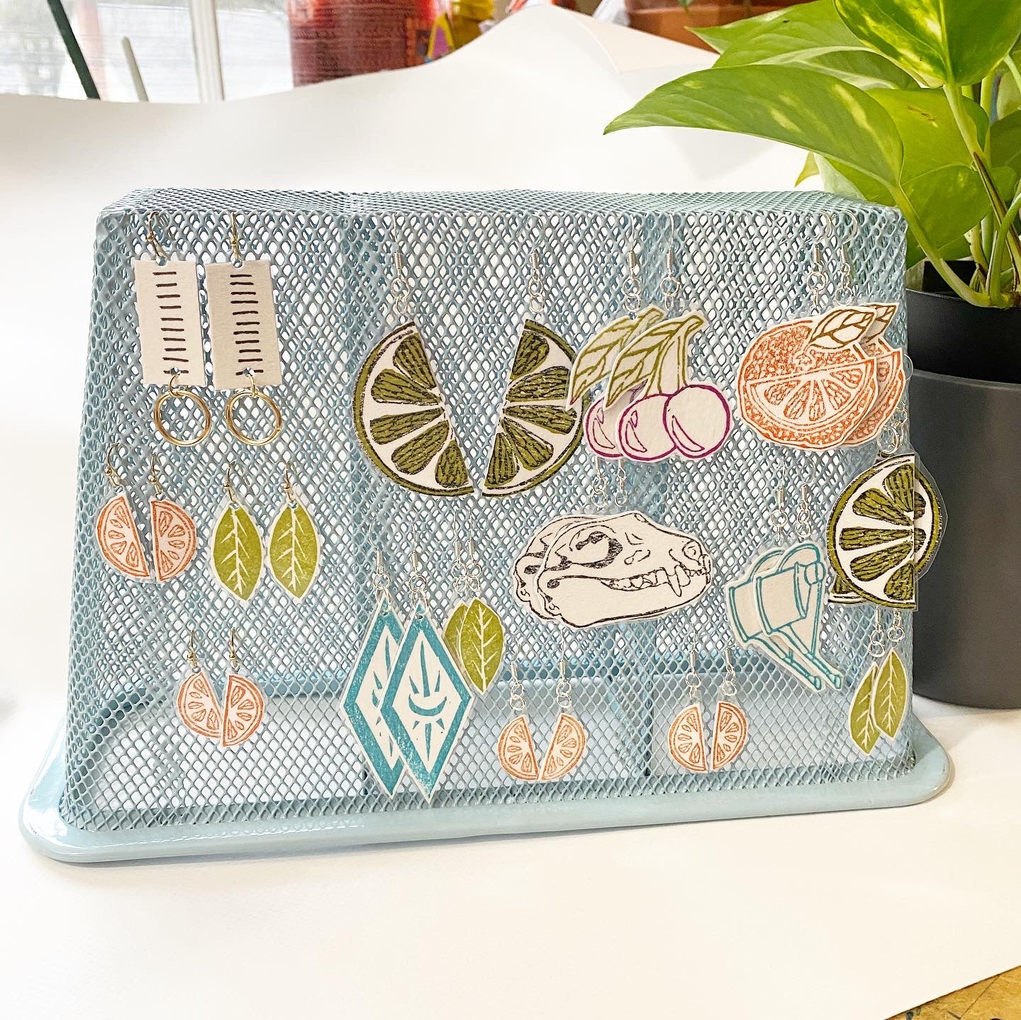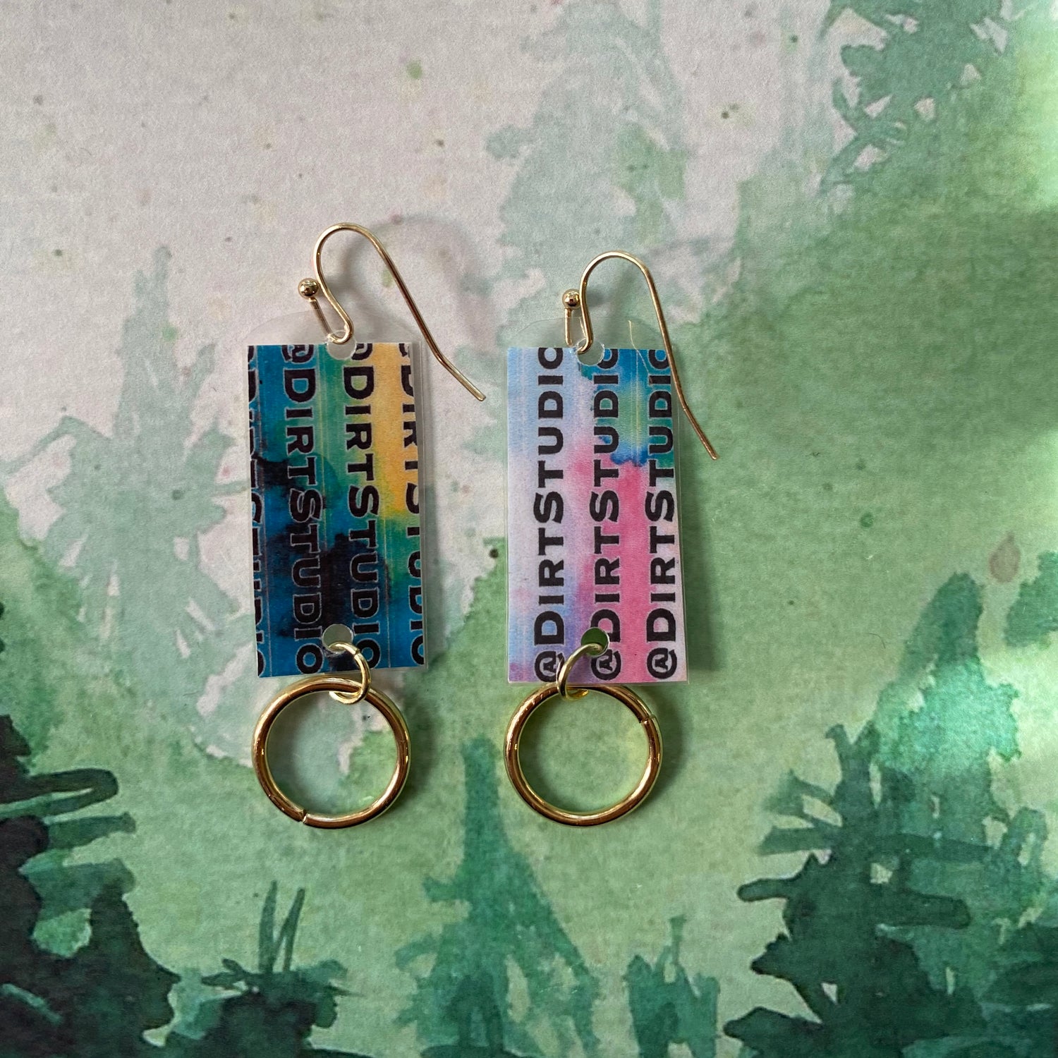 These earrings were made by me! I hand-drew the lines, before laminating and adding the jewelry findings! You can only get these from Dirt Studio LLC!