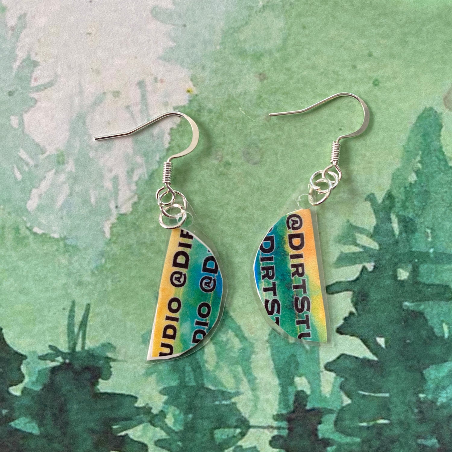 These earrings were made by me! I hand-carved the rubber, then hand-stamped the earrings, before laminating and adding the jewelry findings! You can only get these from Dirt Studio LLC!