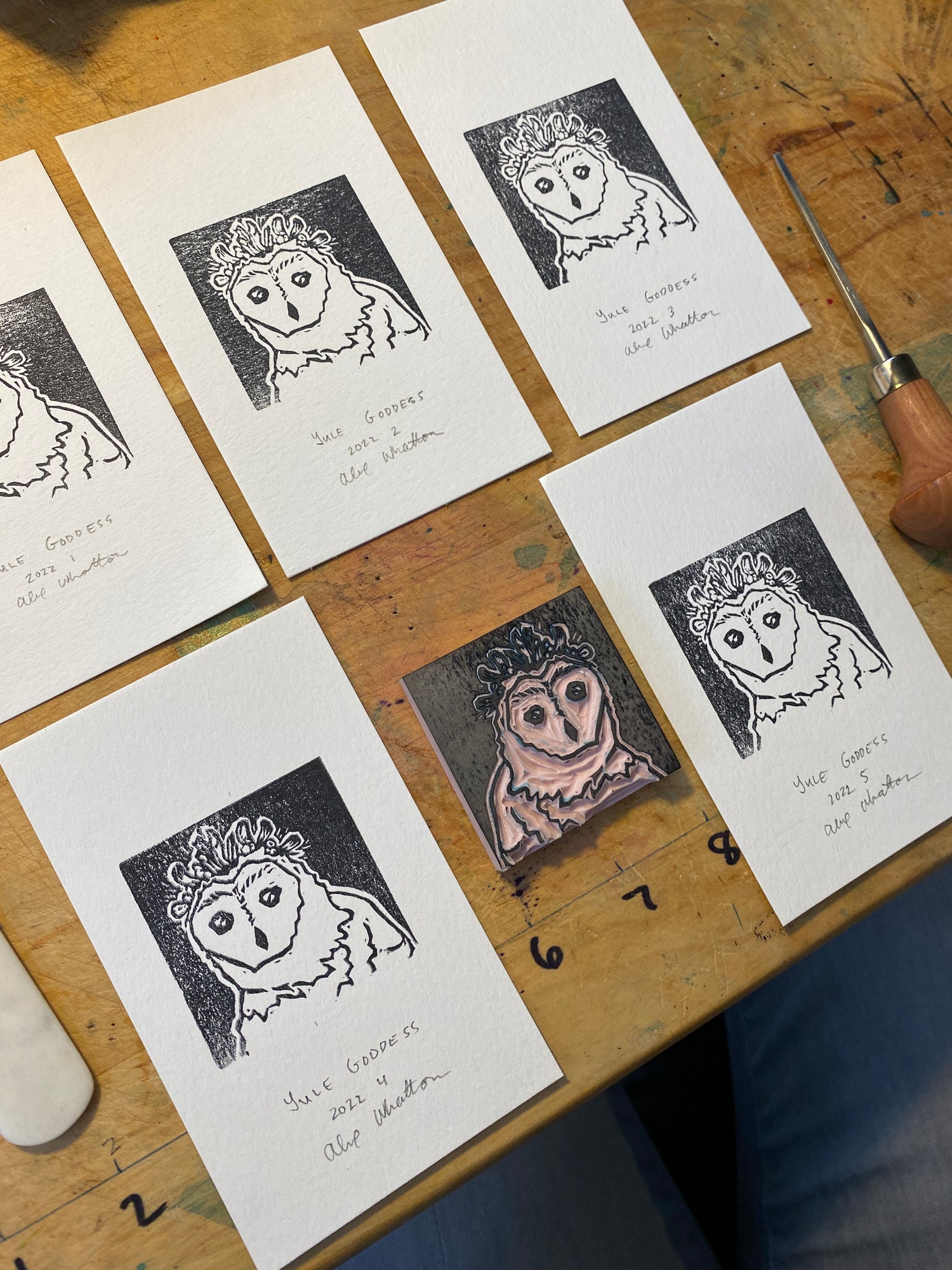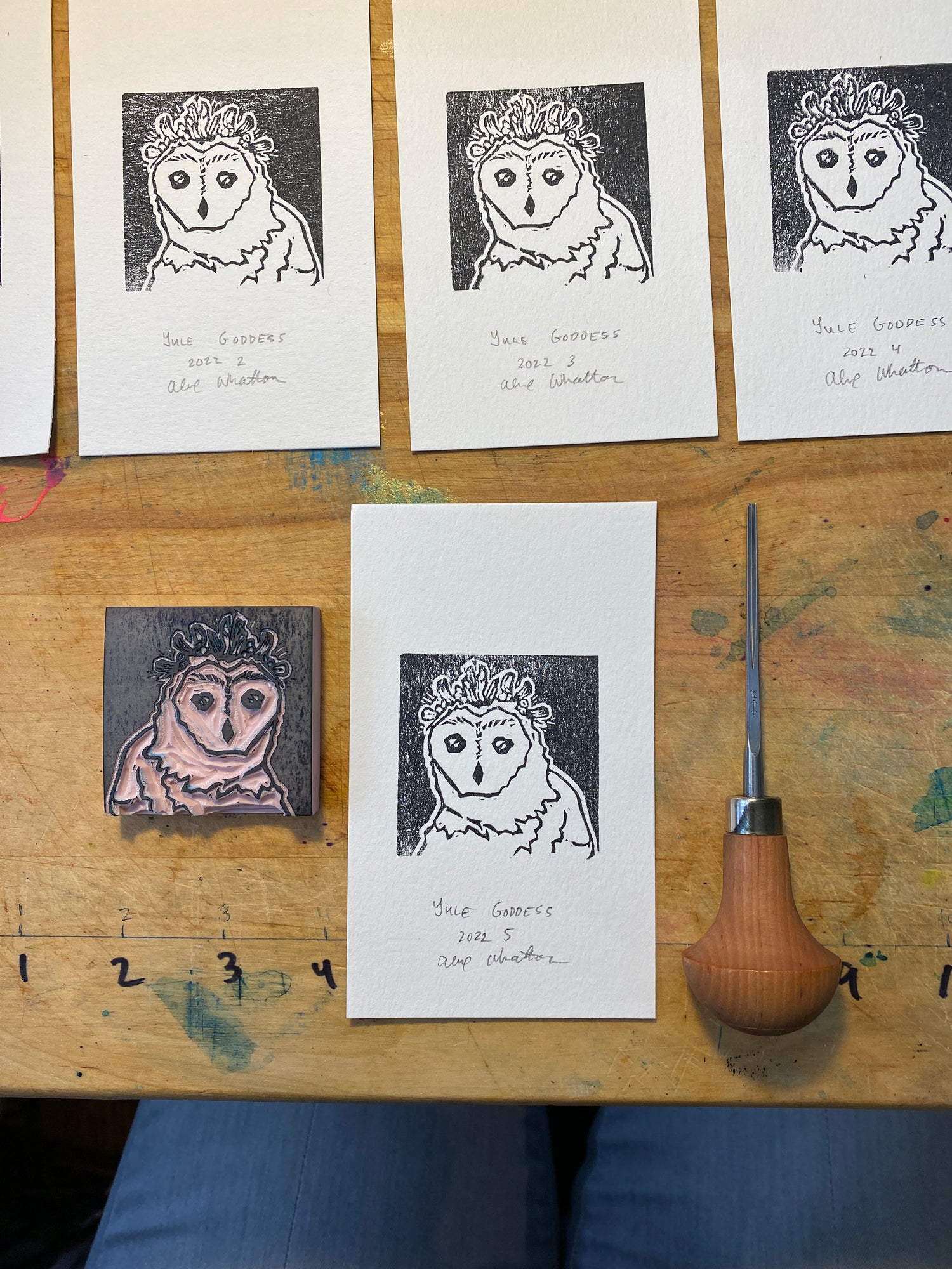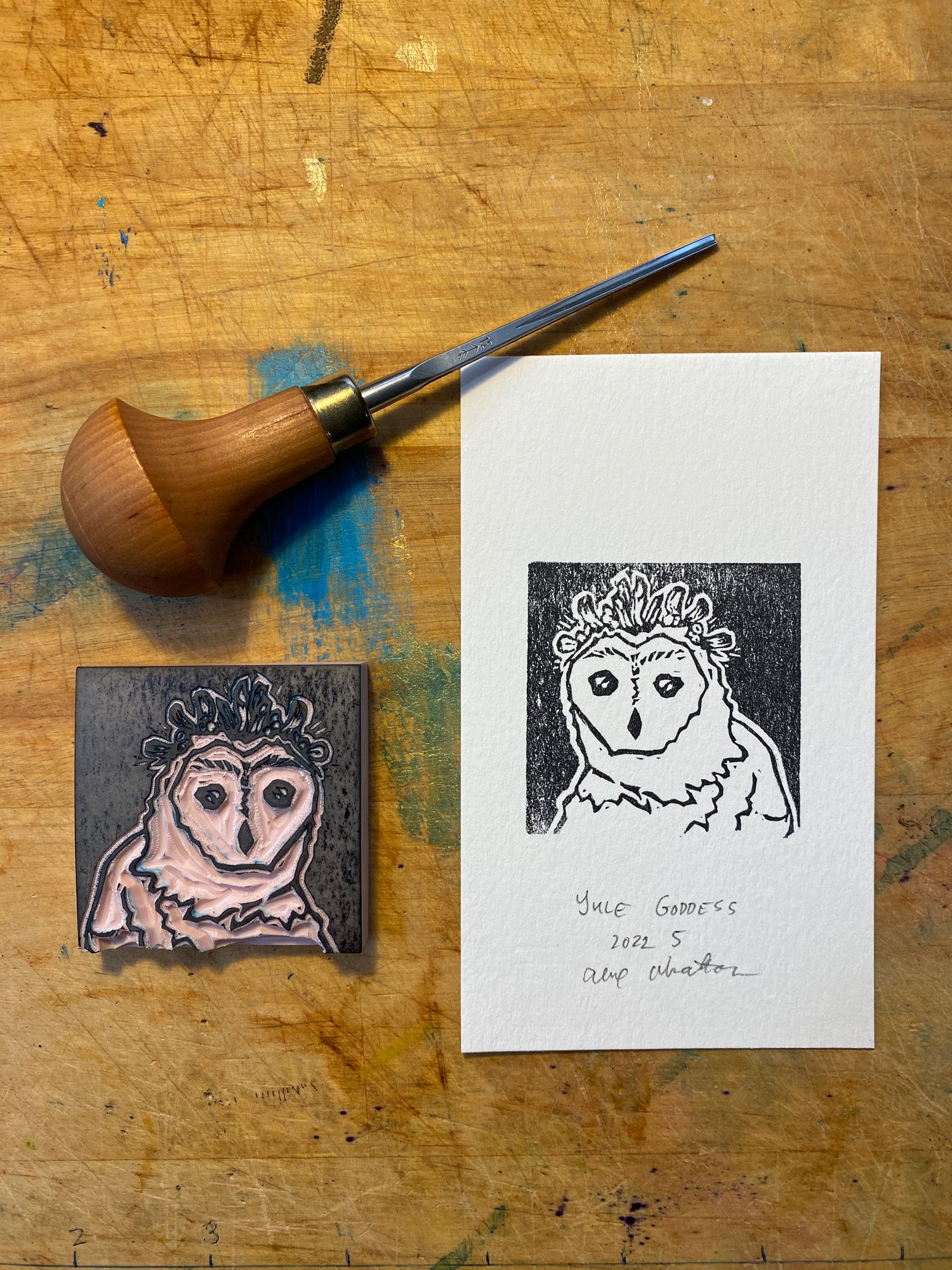An owl with a crown of quartz crystals, mistletoe, and pine. A celebration of 2022 Yule and my chosen goddess to watch over us this season. Her name is Juniper and she loves to be sketched - I can’t seem to stop!